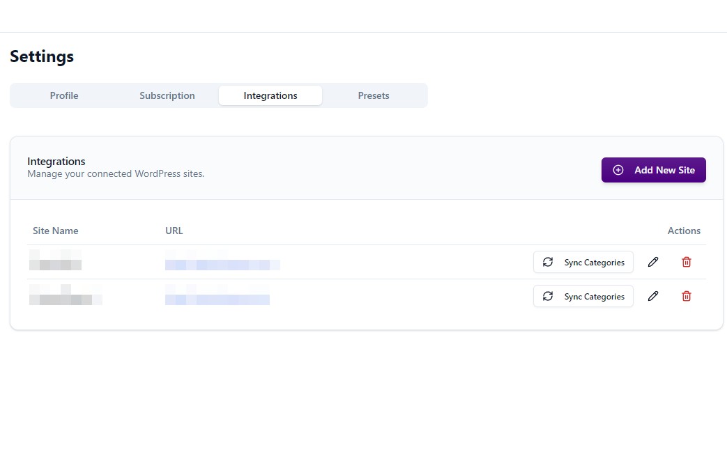 Generate articles on demand and publish directly. Track usage, manage multiple WordPress sites, and scale your content strategy.